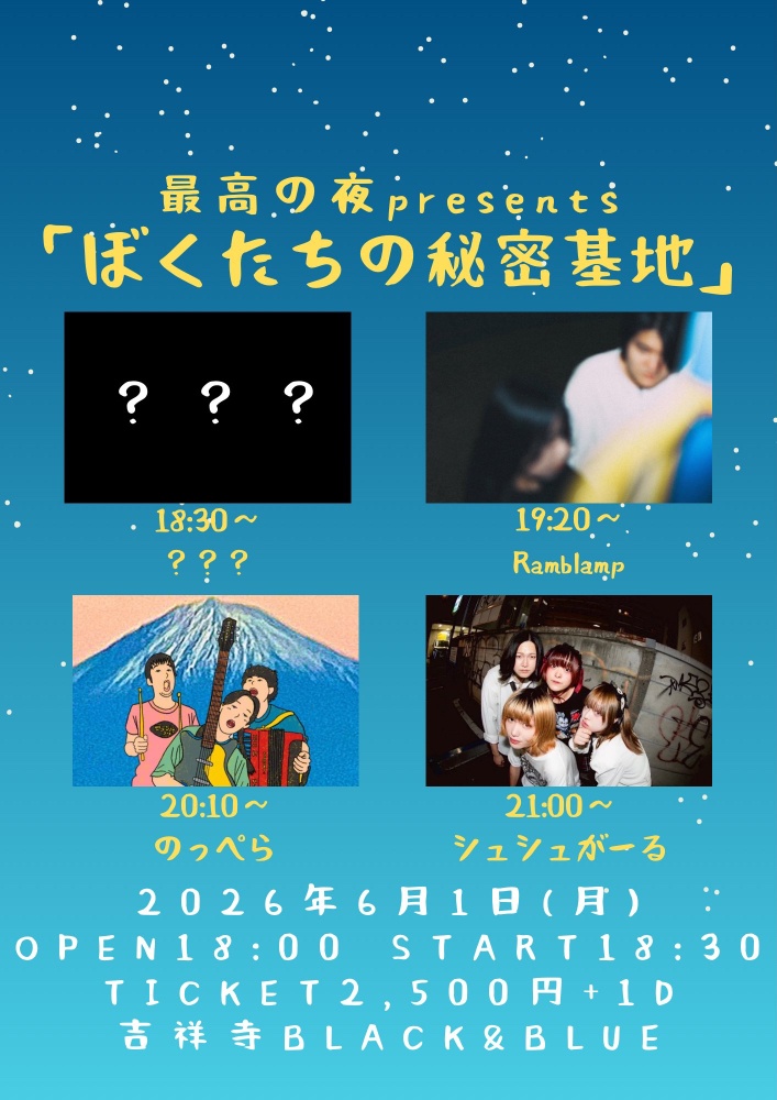 ➡️前売 ¥3,800- / 中学生以下無料 (各+1ドリンク)