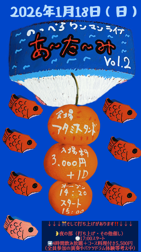 小棚木もみじ(🎸🎤)高林(🪗)松井修司(🥁)で、のっぺらです。